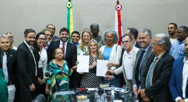 O Parlamento baiano recebeu, na tarde desta segunda-feira (1º), duas proposições do Executivo fruto de discussões com os sindicatos dos servidores públicos estaduais – um projeto de lei que reestrutura o Planserv e uma PEC que garante integralidade e paridade aos policiais civis e penais. Com a presença de representantes das categorias e parlamentares, os secretários estaduais de Relações Institucionais, Adolpho Loyola, e da Administração, Rodrigo Pimentel, entregaram as propostas à presidente da Assembleia Legislativa da Bahia (ALBA), deputada Ivana Bastos, em ato que celebrou os acordos, no Salão Nobre da Casa.