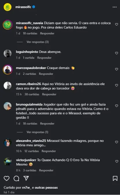 Nas redes sociais, do Mirassol torcedores do Vitória não deixaram passar a boa fase do atleta. Muitos lembraram com ironia das dificuldades enfrentadas no clube baiano. “Não teve uma boa passagem pelo vitória mas desejo sucesso!”, comentou um usuário. Outro foi ainda mais direto: “Mirassol fazendo milagres, porque no vitória meu amigo…“